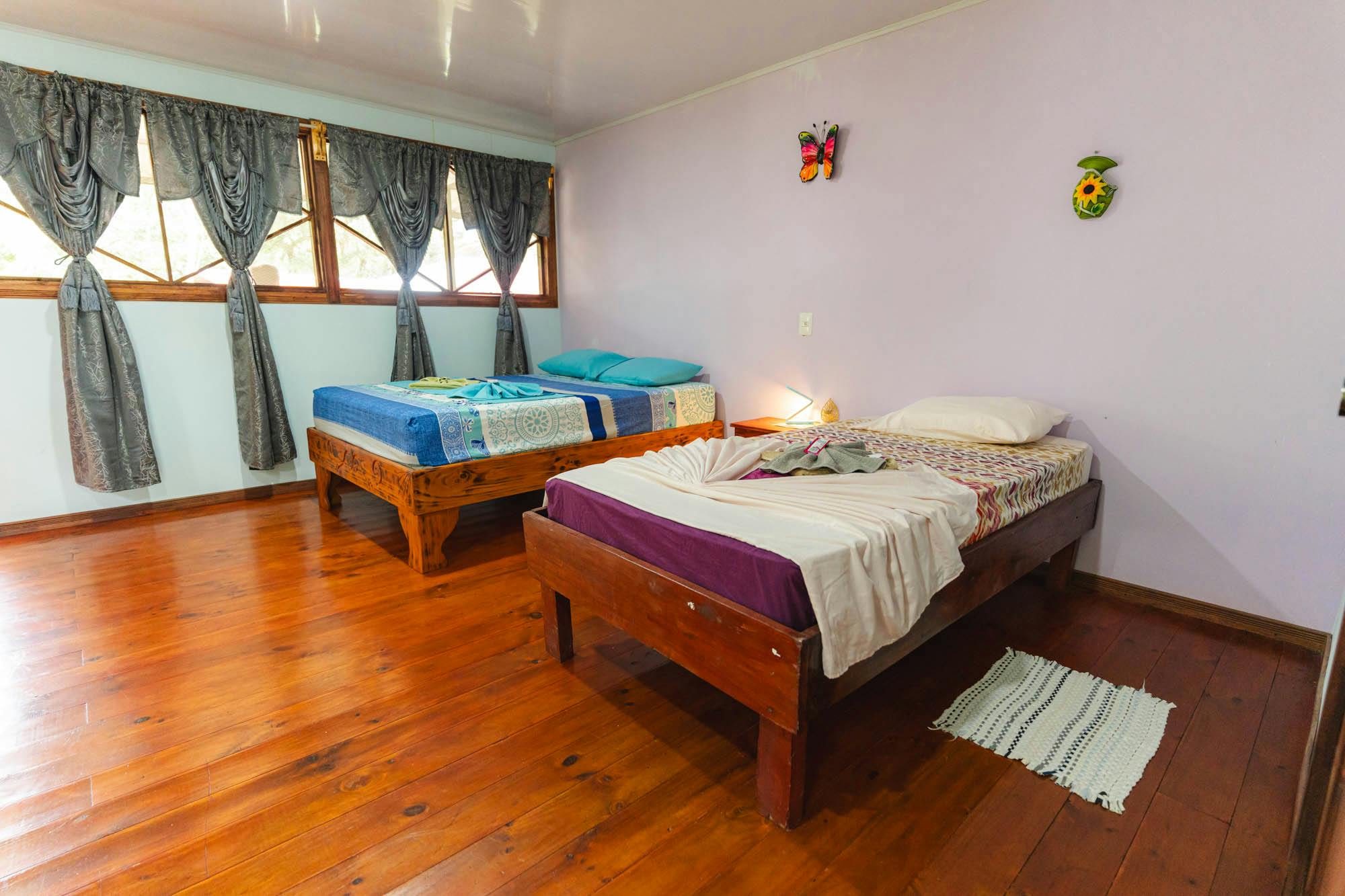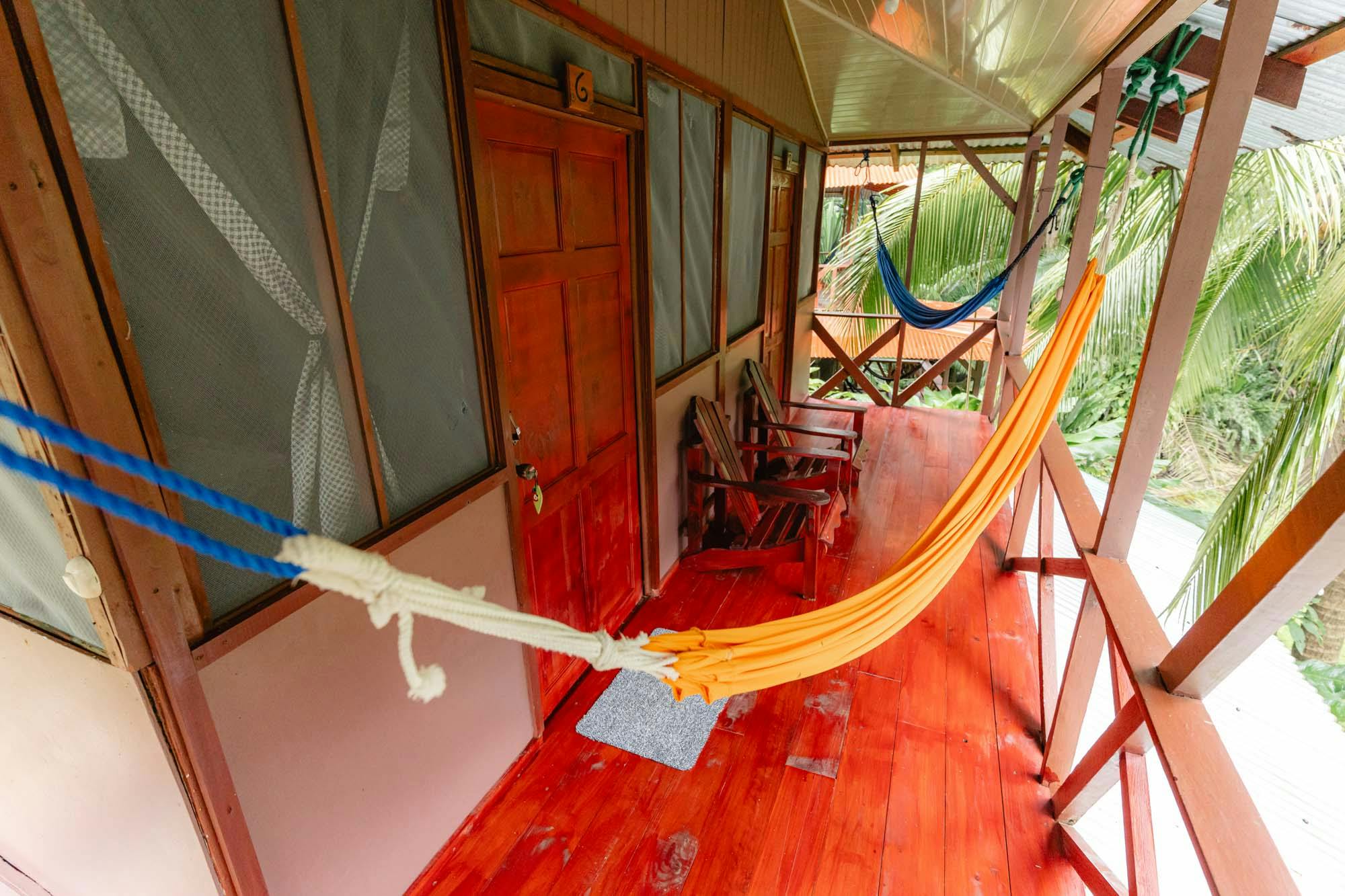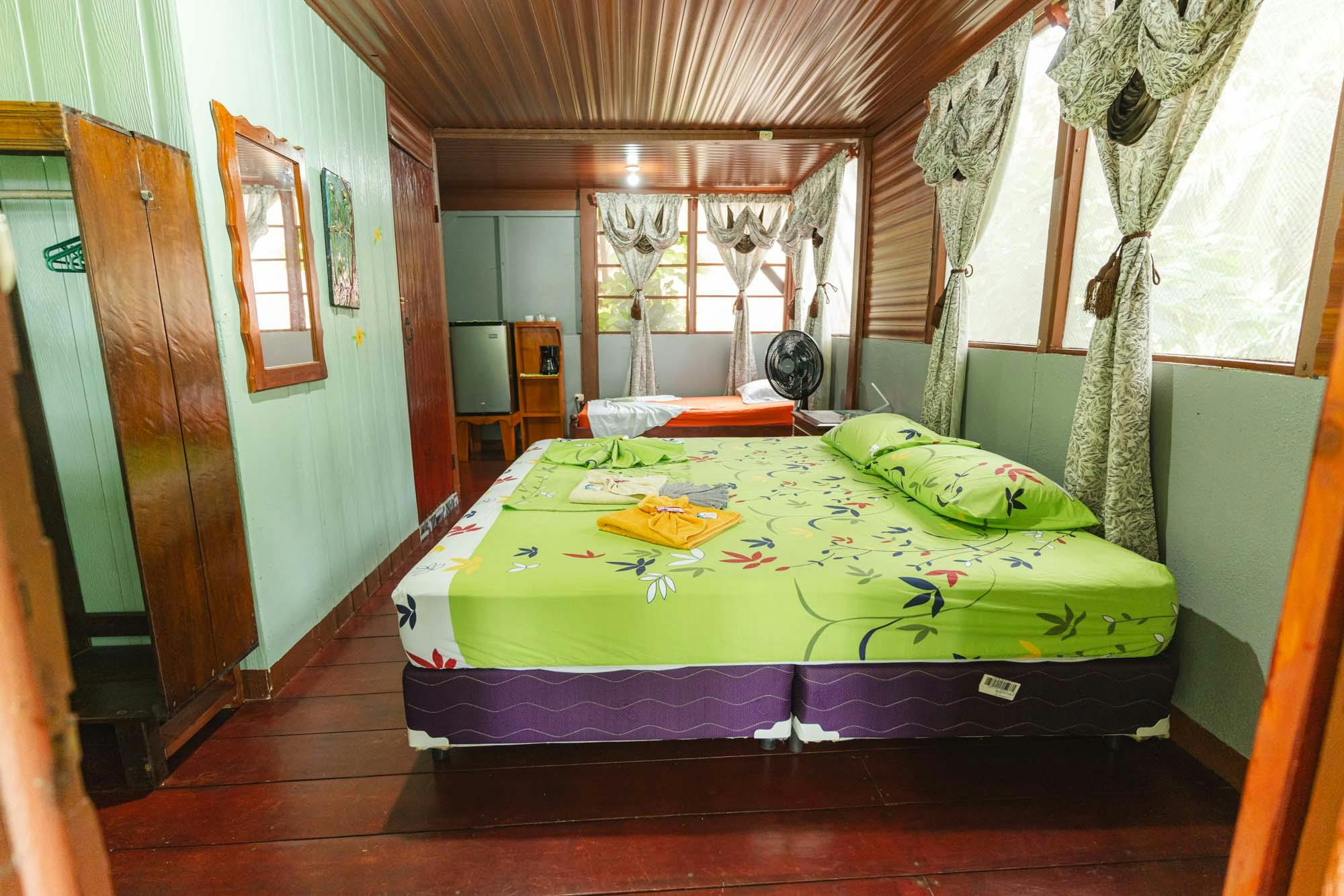 2 camas individuales y 1 cama doble Este bungalow cuenta con habitaciones rústicas, baño privado, ventilador y balcón o terraza